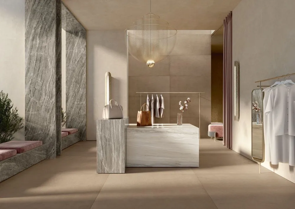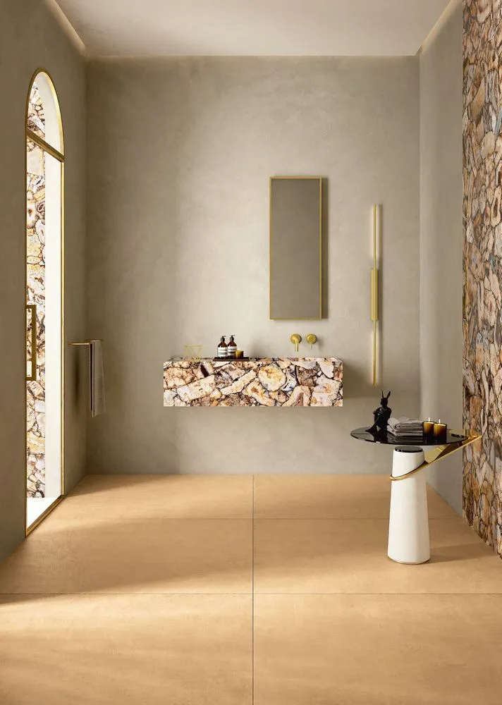 Wohnzimmer in rustikaler Steinoptik oder Badezimmer in edelstem Marmordesign sind heute dank grossformatigen Keramikplatten einfach zu realisieren. Moderne Produktionsmethoden ermöglichen die Herstellung von XXL-Keramikplatten mit minimaler Stärke, was sich wiederum im geringen Gewicht widerspiegelt.